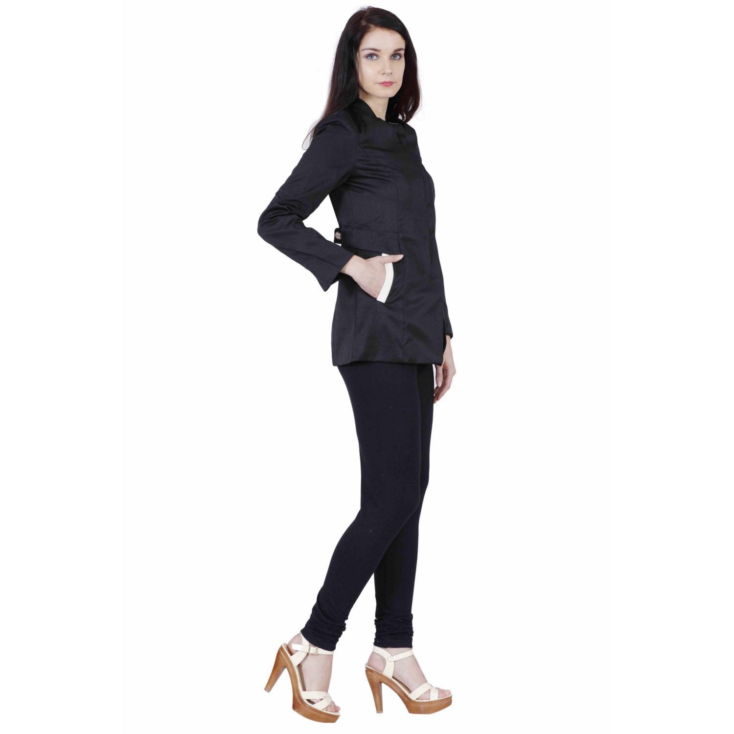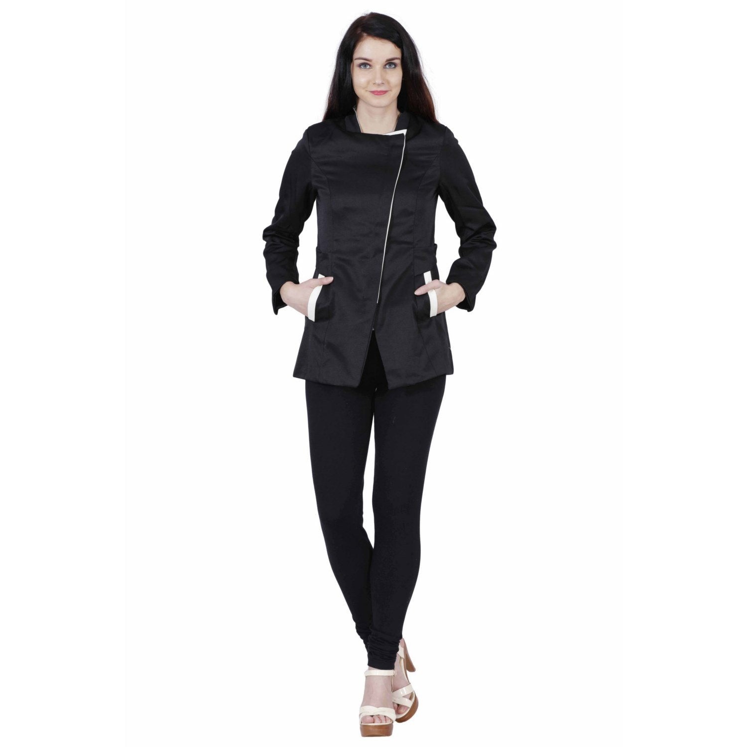 The ultimate hustler jacket is here. One jacket - many different looks. This special edition jacket from Jaune features an ultra soft and light weight black jacket with designer cookie cream coloured lapel and zipper closure. It also has aesthetic straps at the sides with buttons detailing and cream coloured broad pocket linings. It comes with a detachable hoodie in cookie cream colour that can be attached to the main jacket with buttons along both the sides and also has an extra layer of zipper closure to add to the style. The Model has Height 5Š—È9Š—? , Bust 33.5Š—? , Waist 24Š—? , Hips 35.5Š—? and is wearing Size S.