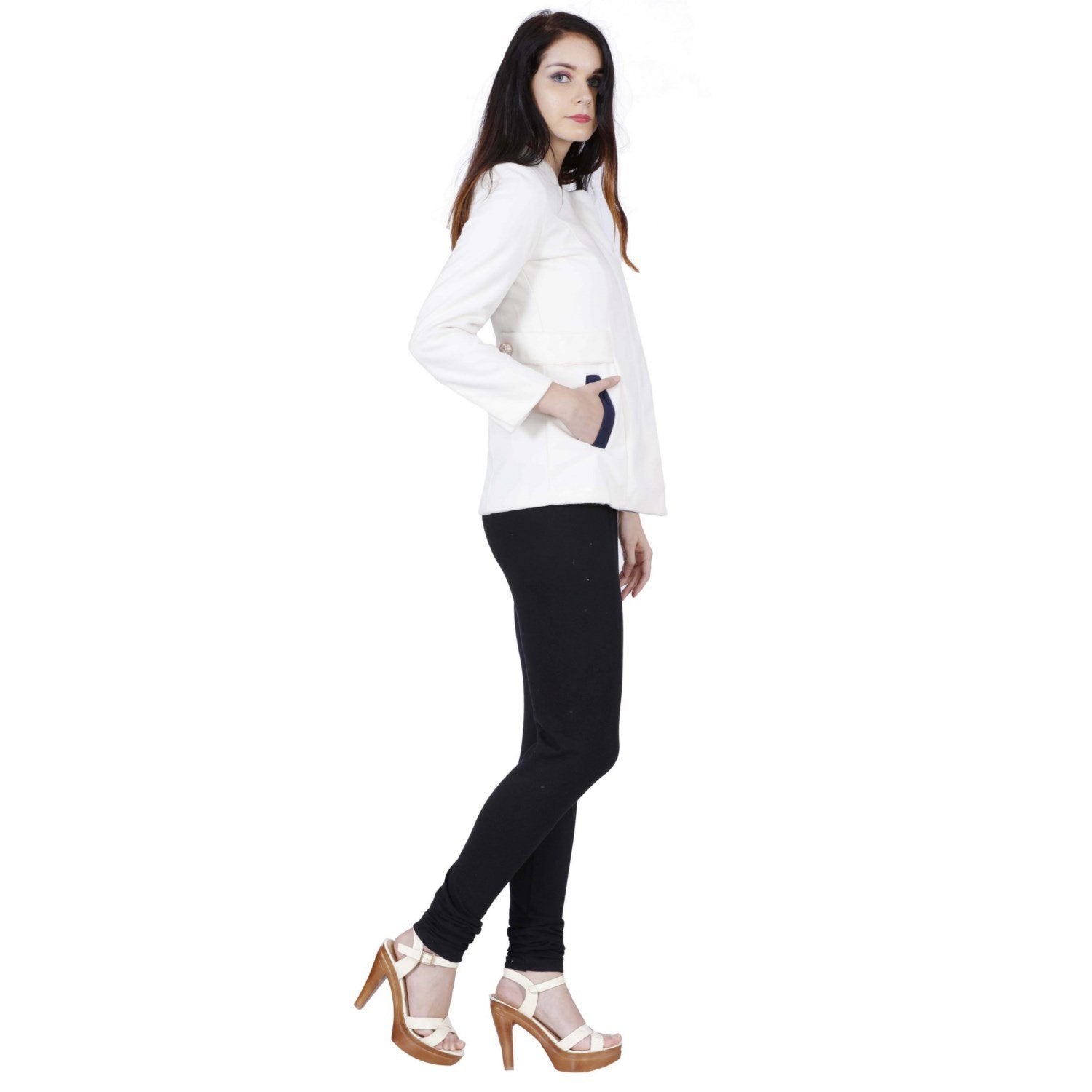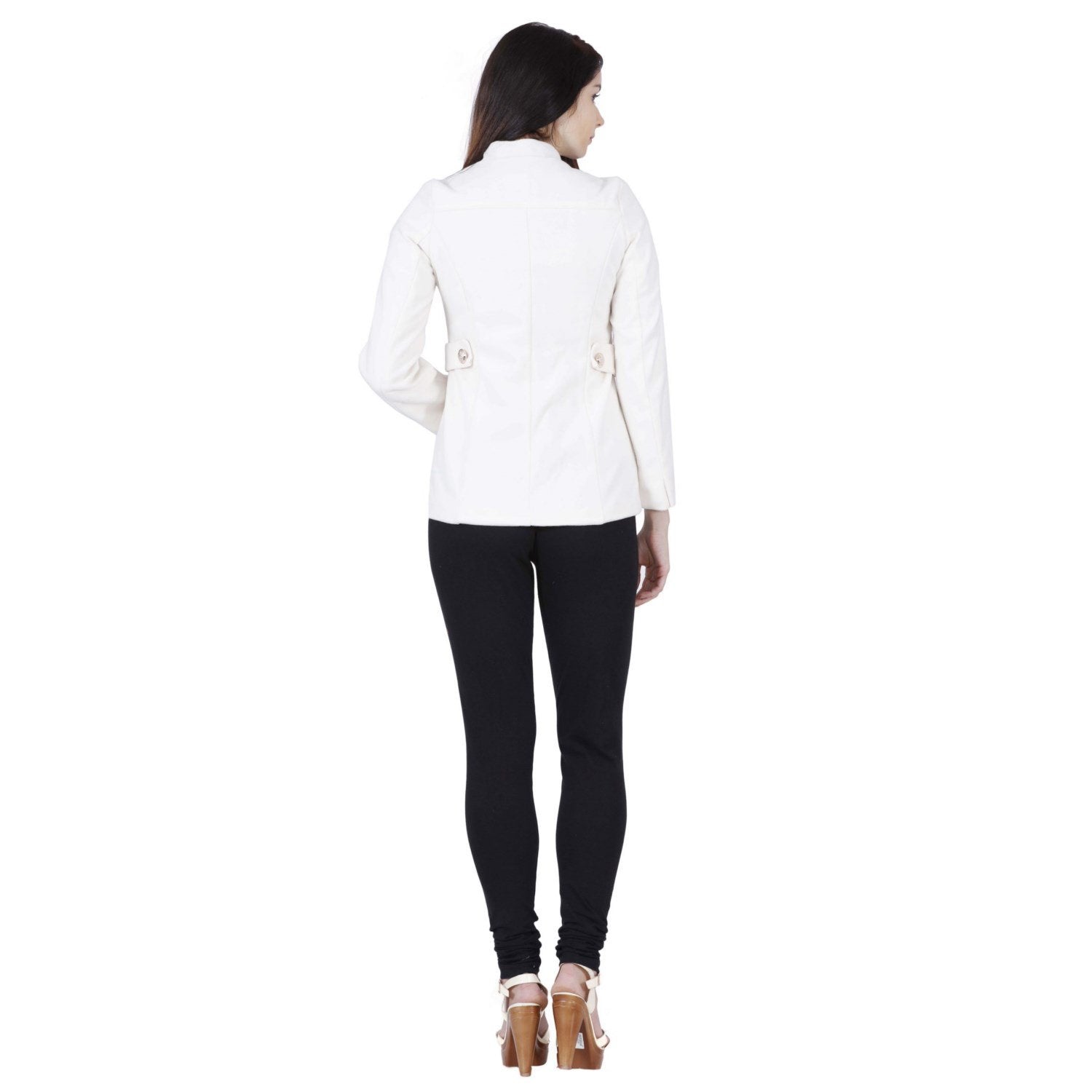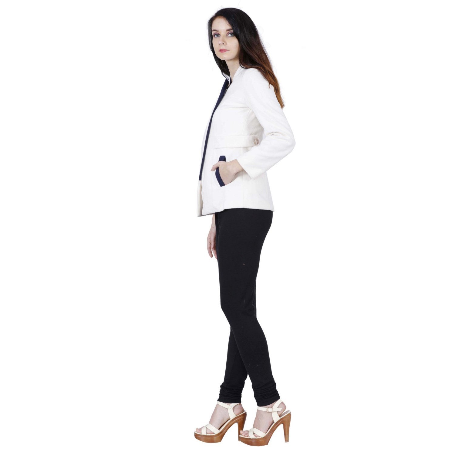 The ultimate hustler jacket is here. One jacket - many different looks. This special edition jacket from Jaune features an ultra soft and light weight off-white jacket with designer navy lapel and zipper closure. It also has aesthetic straps at the sides with buttons detailing and navy coloured broad pocket linings. It comes with a detachable hoodie in navy that can be attached to the main jacket with buttons along both the sides and also has an extra layer of zipper closure to add to the style. The Model has Height 5Š—È9Š—? , Bust 33.5Š—? , Waist 24Š—? , Hips 35.5Š—? and is wearing Size S.