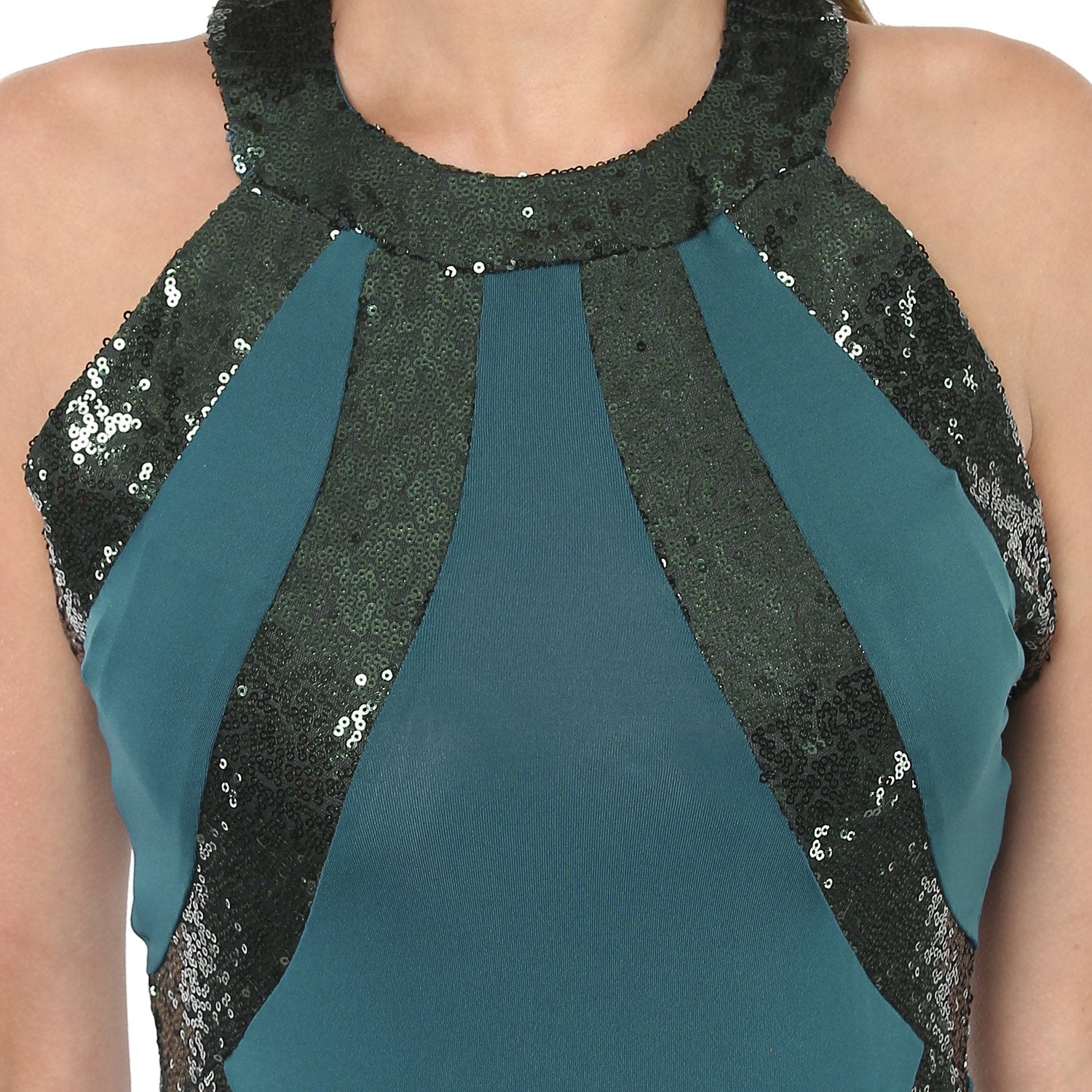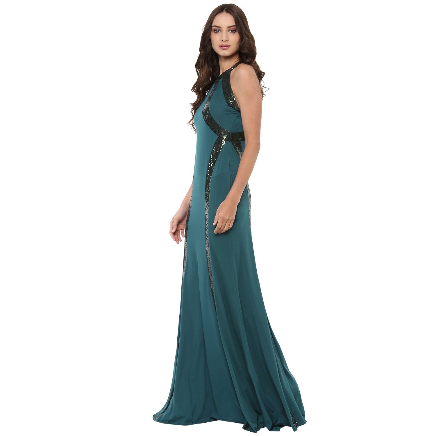 Jaune Paris Shimmer Sequin Halter Empire Gown - Blue Green