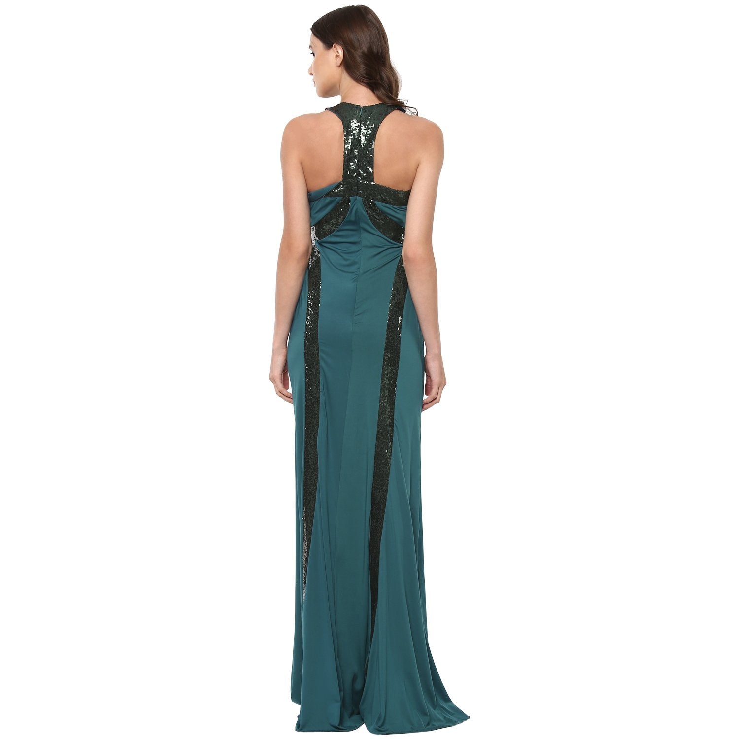 You will surely earn maximum style points from fashion critics when you wear this gown from the latest collection of Jaune. Exhibiting a round halter neck with sequin work, it features fabulous sequined panel styling on the front and at the back for an added feminine spin. The T-shape back further adds to its allure. Tailored in regular fit from a blend of 90% polyester, 5% cotton and 5% elastane, it has a back zip closure. Team this gown with statement sandals to make a lasting fashion impression. This dress is made of Anti-Wrinkle, Breathable, Eco-Friendly, Anti-Pilling, Anti-Shrink Fabric. Model Stats : The Model has Height 5'6" , Bust 32" , Waist 24" , Hips 32" and is wearing Size S.